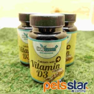 HugGreen Calcium with D3 contain high level of phosphorus-free calcium as well as balanced amounts of vitamin D3 for optimal calcium absorption and to help ensure long-term health. Vitamin D3 aids in the proper absorption of calcium and is vital for captive reptile and amphibians not exposed to natural sunlight or ultraviolet lights.